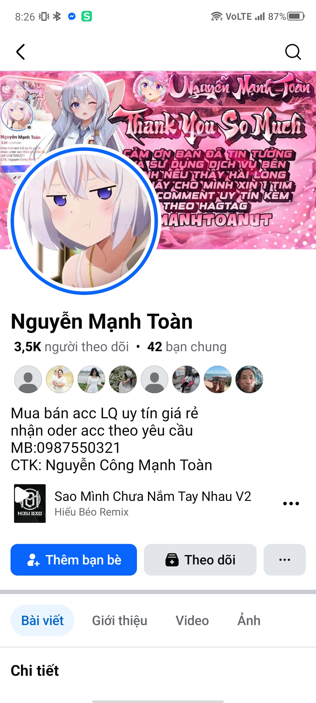 🔎 Bài cảnh báo nguyen cong manh toan gửi ngày 04/07/2025, cập nhật lần cuối 13/07/2025, hiện có 6 lượt tìm kiếm. Cho đến thời điểm hiện tại, thông tin nguyen cong manh toan, chủ STK: 0987550321 đã được duyệt, nếu bạn có gặp tài khoản này hãy cẩn thận trước khi chuyển tiền.