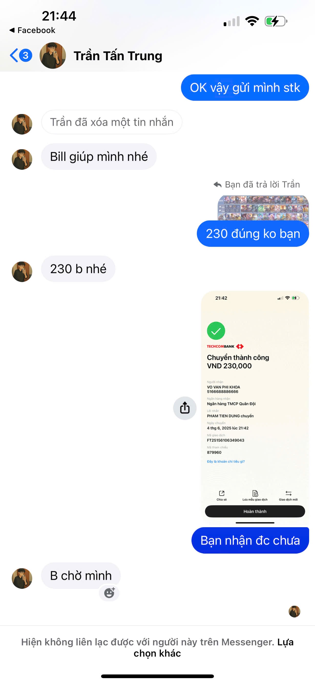 🔎 Bài cảnh báo vo van phi hoa gửi ngày 01/07/2025, cập nhật lần cuối 12/07/2025, hiện có 1 lượt tìm kiếm. Cho đến thời điểm hiện tại, thông tin vo van phi hoa, chủ STK: 5166688886666 đã được duyệt, nếu bạn có gặp tài khoản này hãy cẩn thận trước khi chuyển tiền.